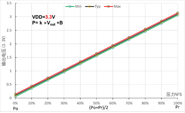 | 広報oduct model(3.3V) | レンジ(kPa) | 出力電圧(V) | 係数とオフセット | |||
